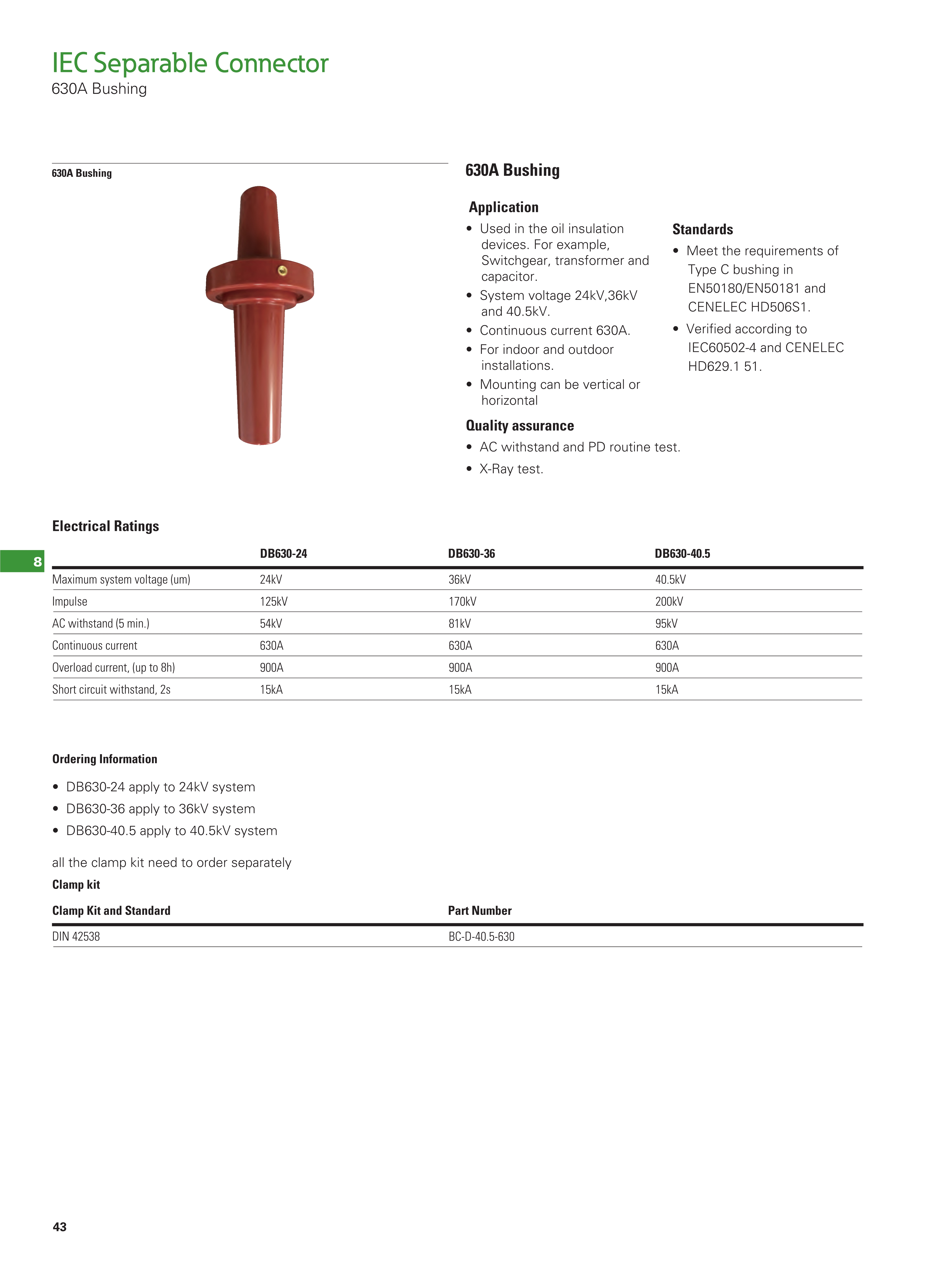 System voltage 24kV, 36kV and 40.5kV.