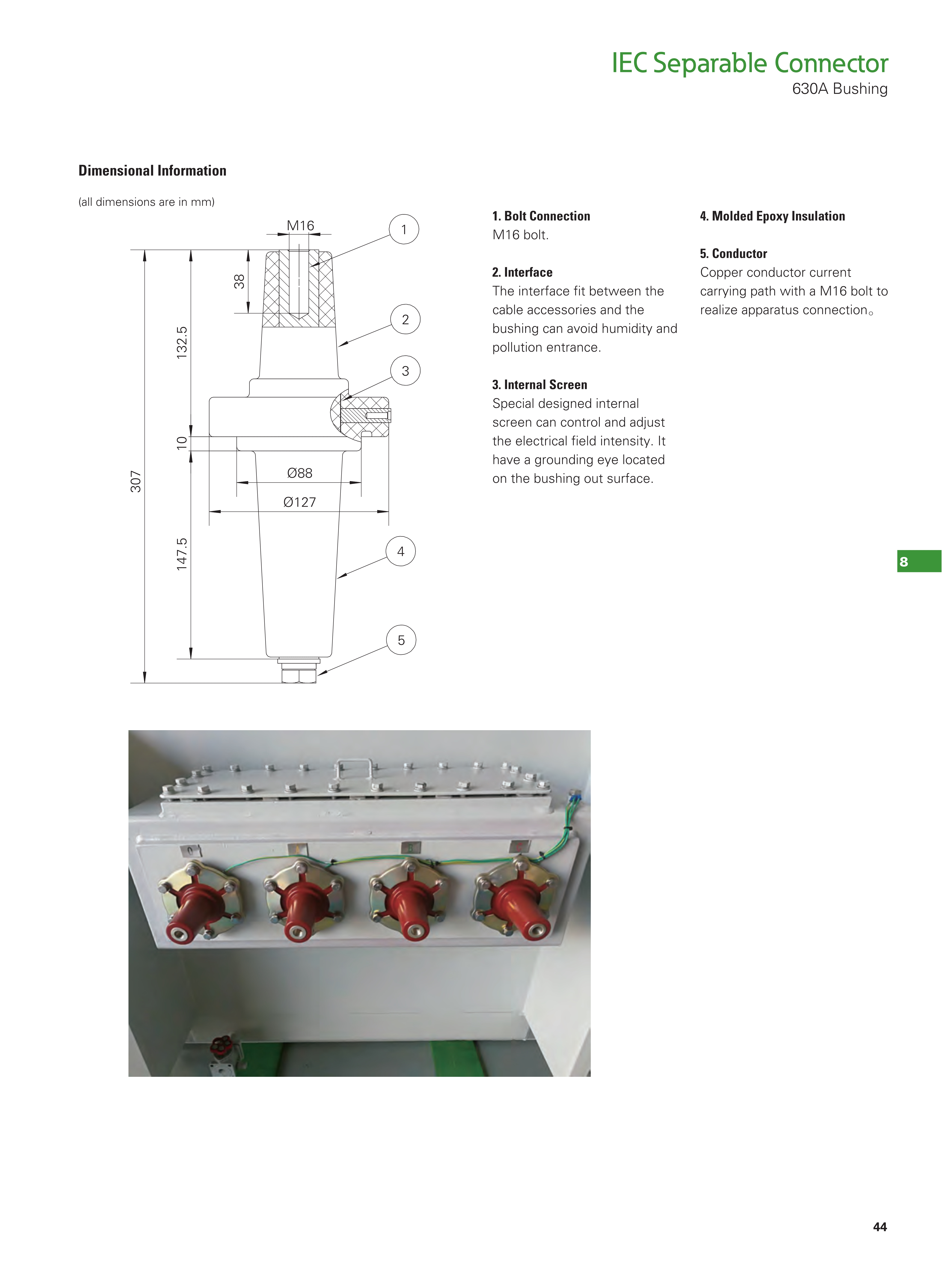 Meet the requirements of Type C bushing in EN50180/EN50181 and CENELEC HD506S1.