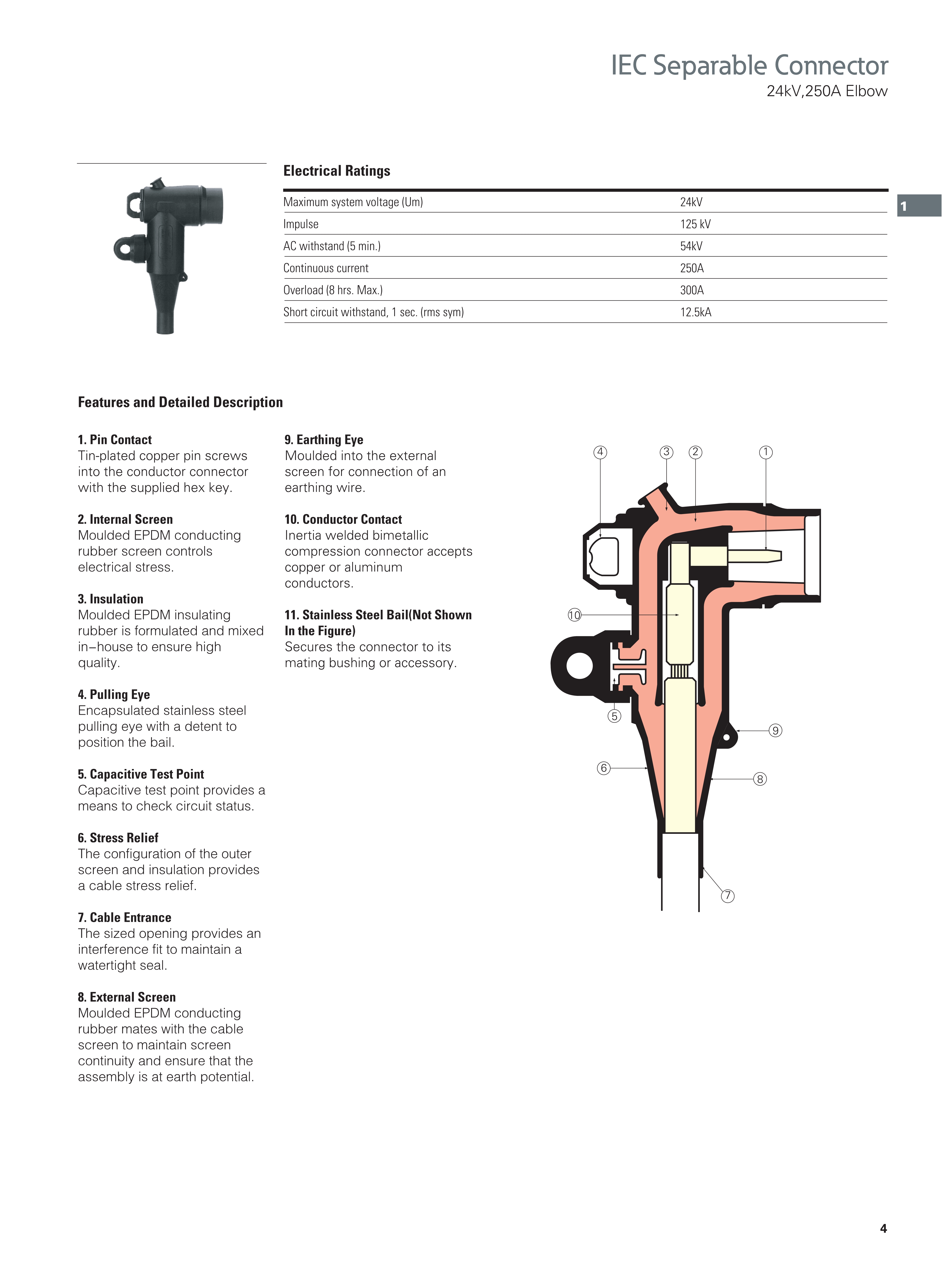 Provides a fully screened and fully submersible separable connection when mated with the proper bushing or plug meet the requirements of EN50180/EN50181-DIN47636/HN52-S-61.