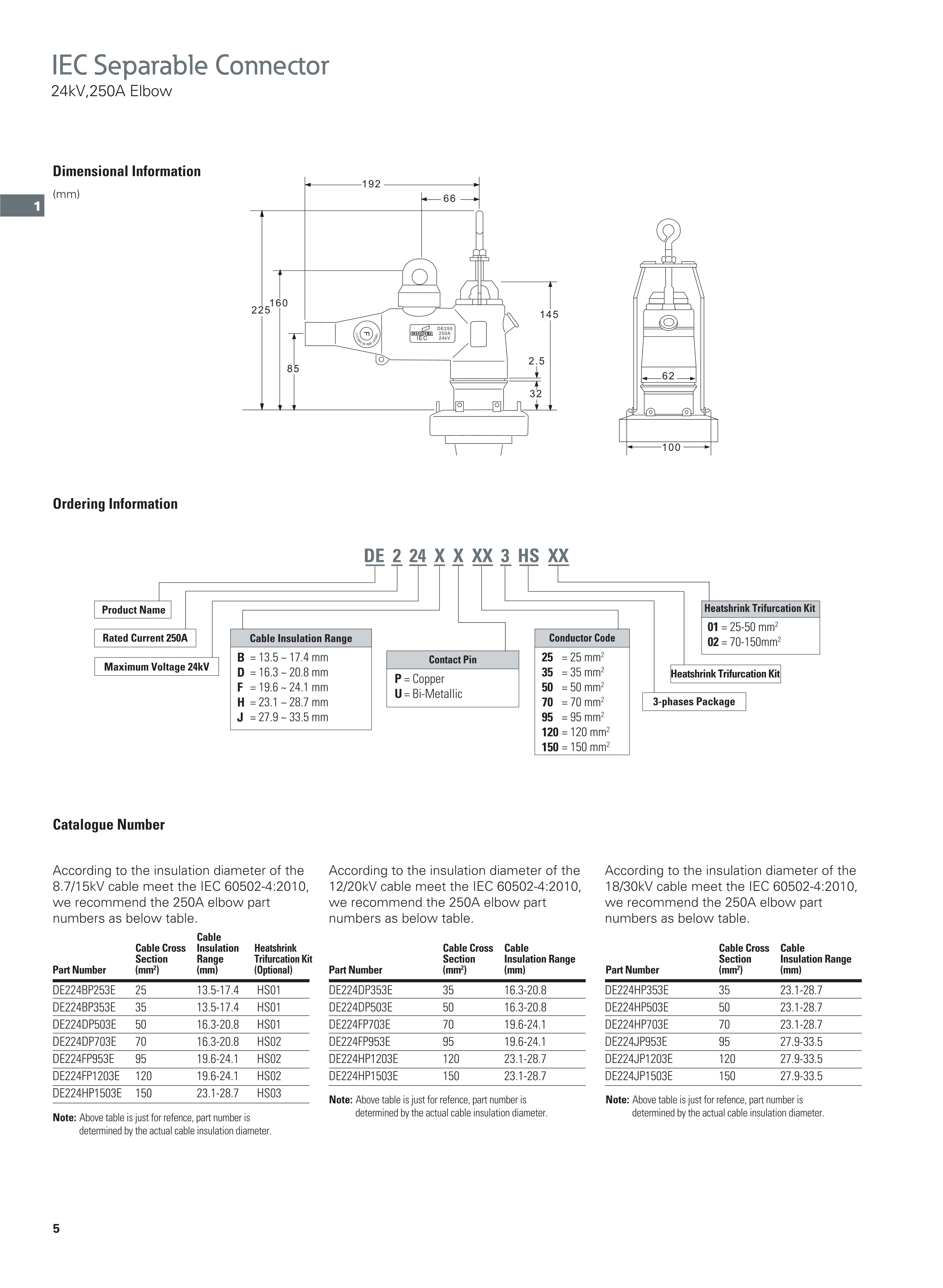Eaton(Cooper)A接口肘型电缆头 250A 24kV Type A Interface Elbow Connector (DE224 Series)