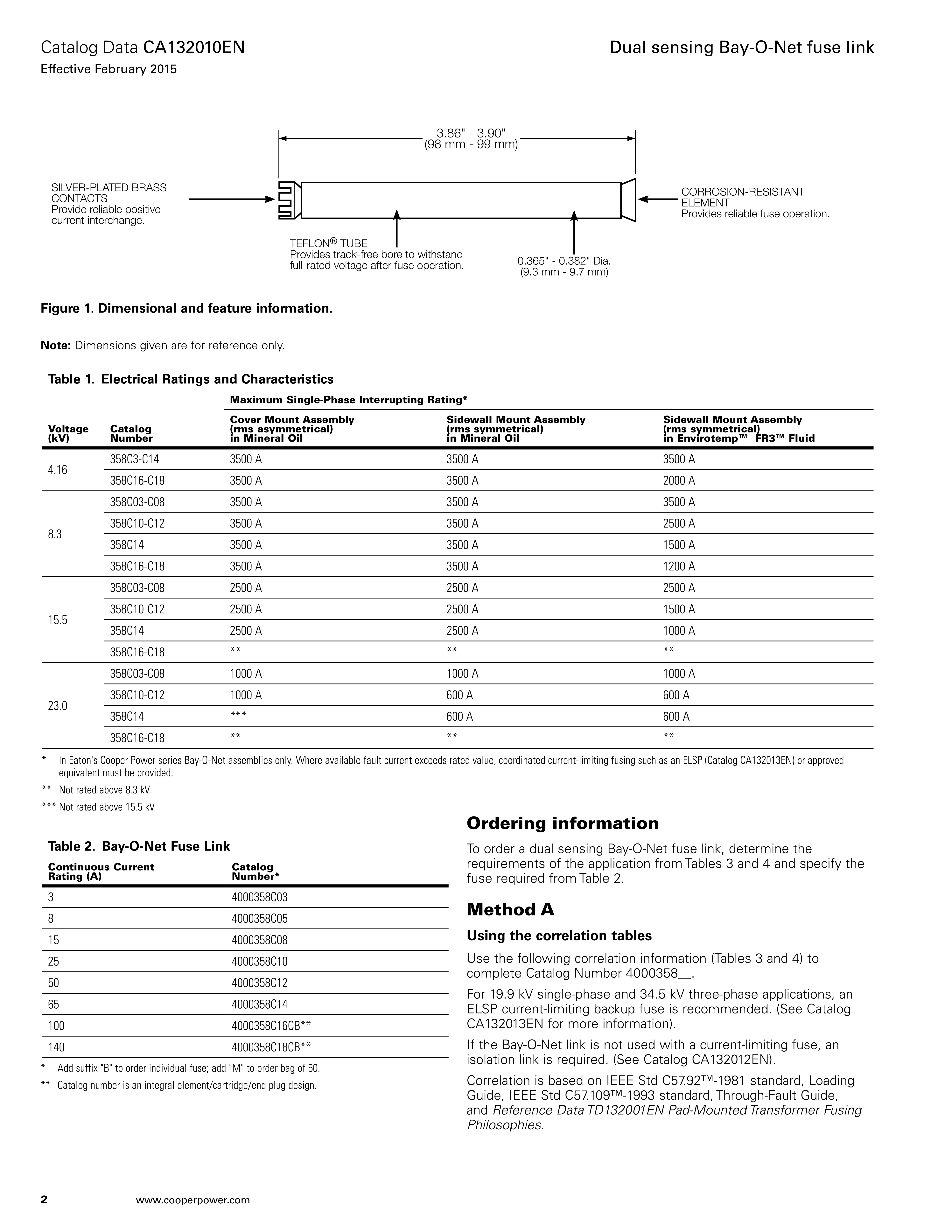 Eaton protects both distribution apparatus from damaging currents and to protect distribution systems from failed apparatus with its Cooper Power series dual sensing Bay-O-Net fuse link that is used in Eaton's Cooper Power series BayO-Net fuse assemblies (see Catalog CA132015EN Sidewall-Mounted and Cover-Mounted Bay-O-Net Fuse Assembly).