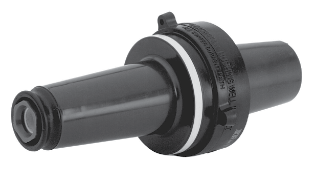 Eaton's exclusive latch indicator ring, located on the circumference of the bushing's collar, eliminates the guesswork of loadbreak elbow installation on the bushing insert. The bright yellow ring provides immediate feedback to determine if the elbow is properly installed on the insert. If the yellow ring is completely covered by the loadbreak elbow, it is fully "latched," if the ring is visible, the elbow can be installed correctly before any problems can occur.