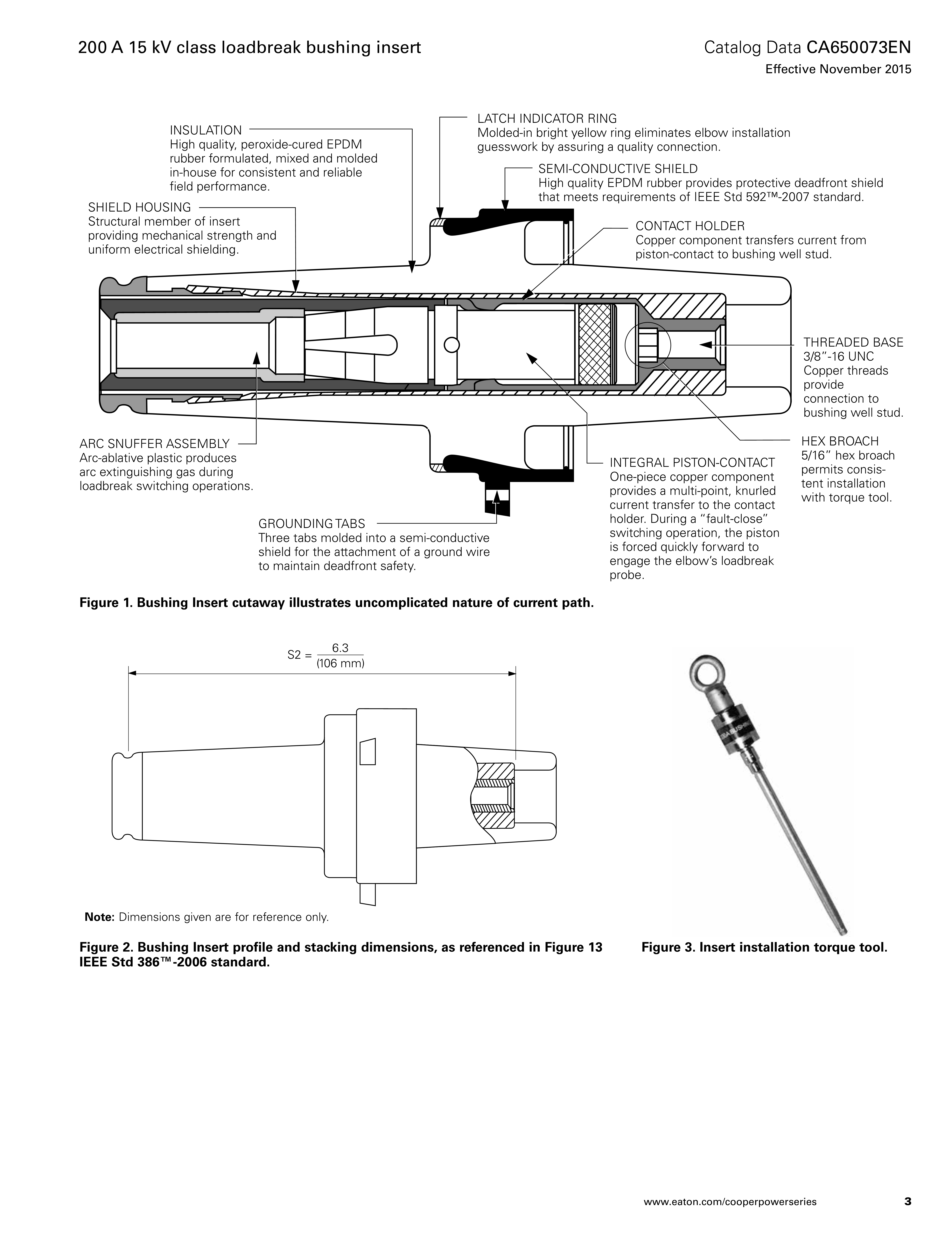 The bushing insert meets all the requirements of IEEE Std 386™-2006 standard and is completely interchangeable with mating products that also meet IEEE Std 386™-2006 standard. When mated with a comparably rated component, the bushing insert provides a fully shielded and submersible connection for loadbreak operation.