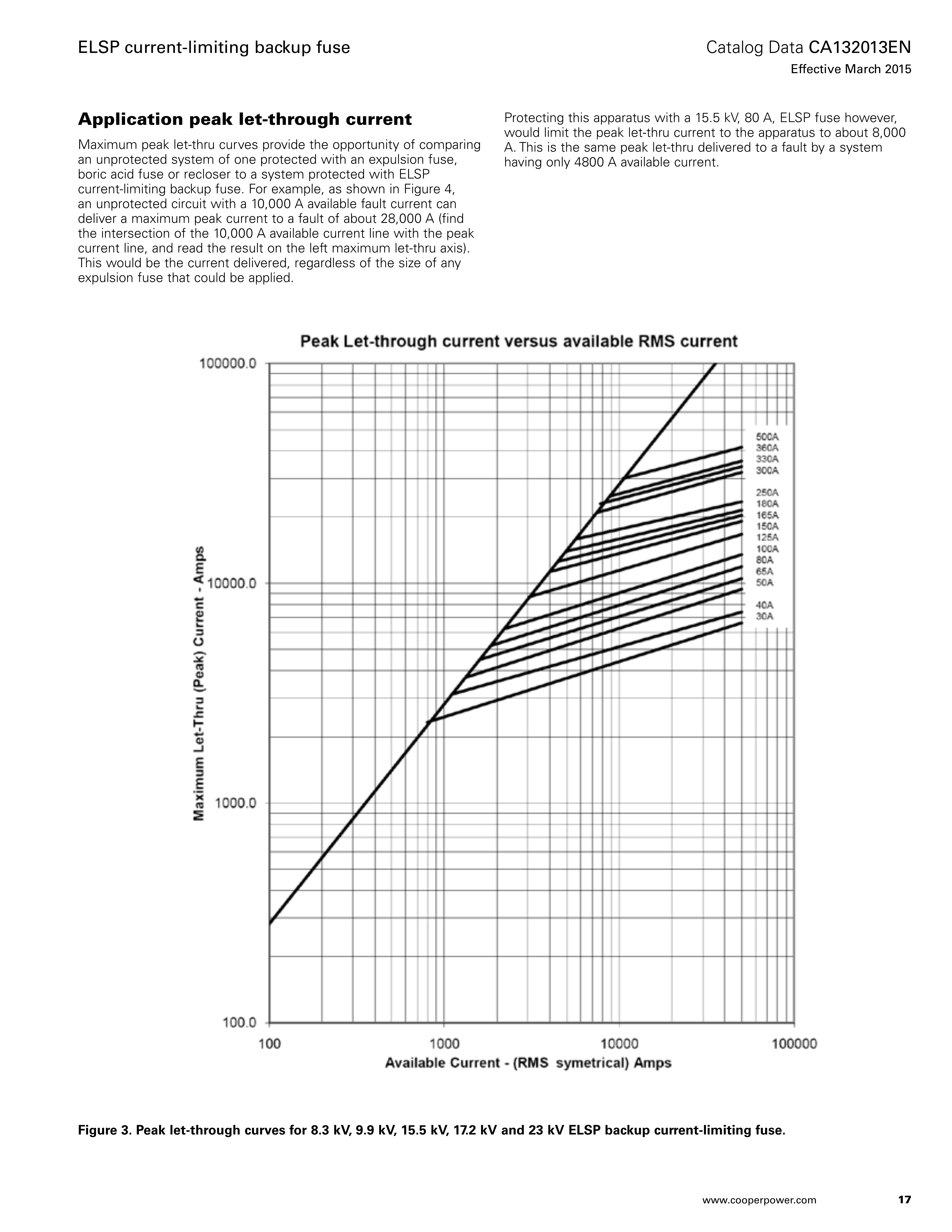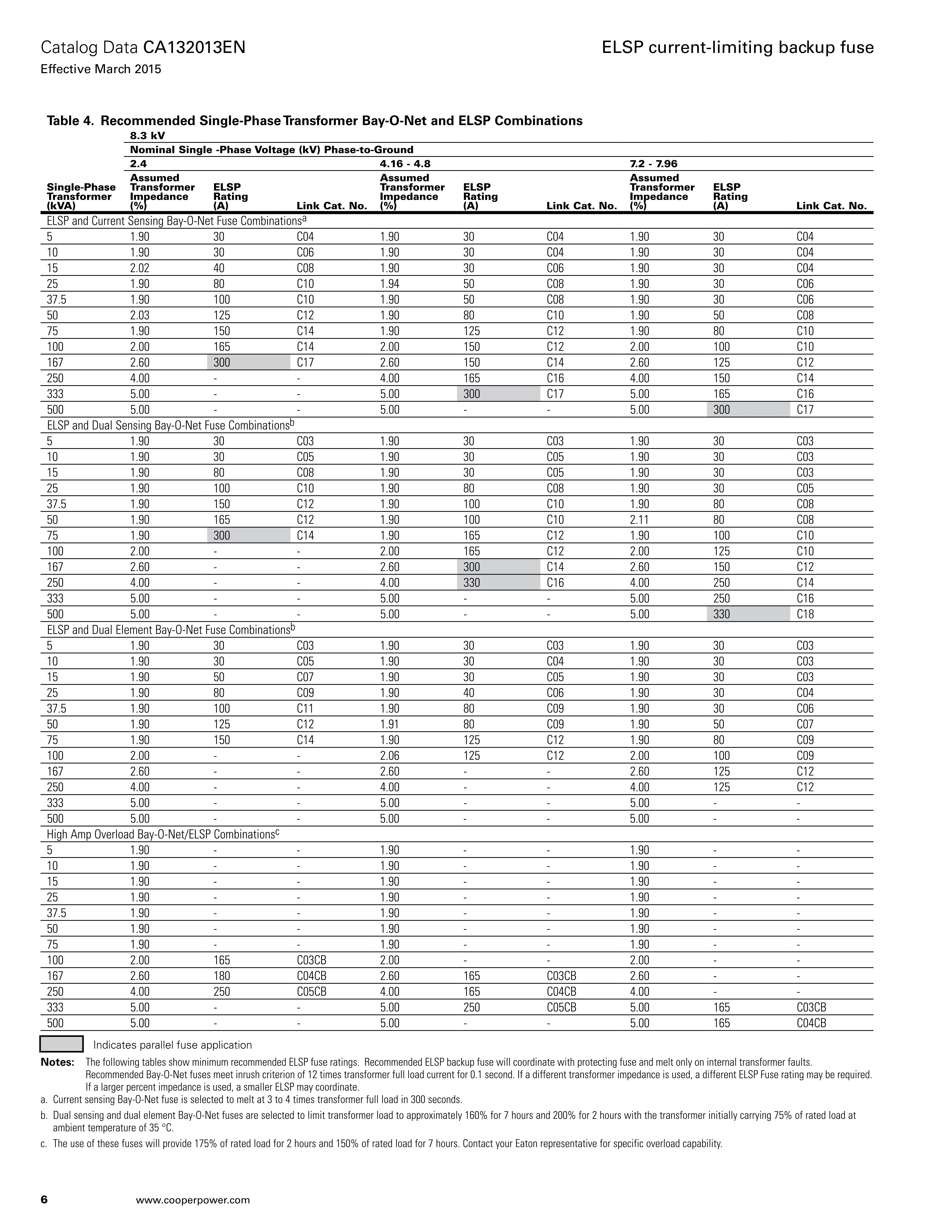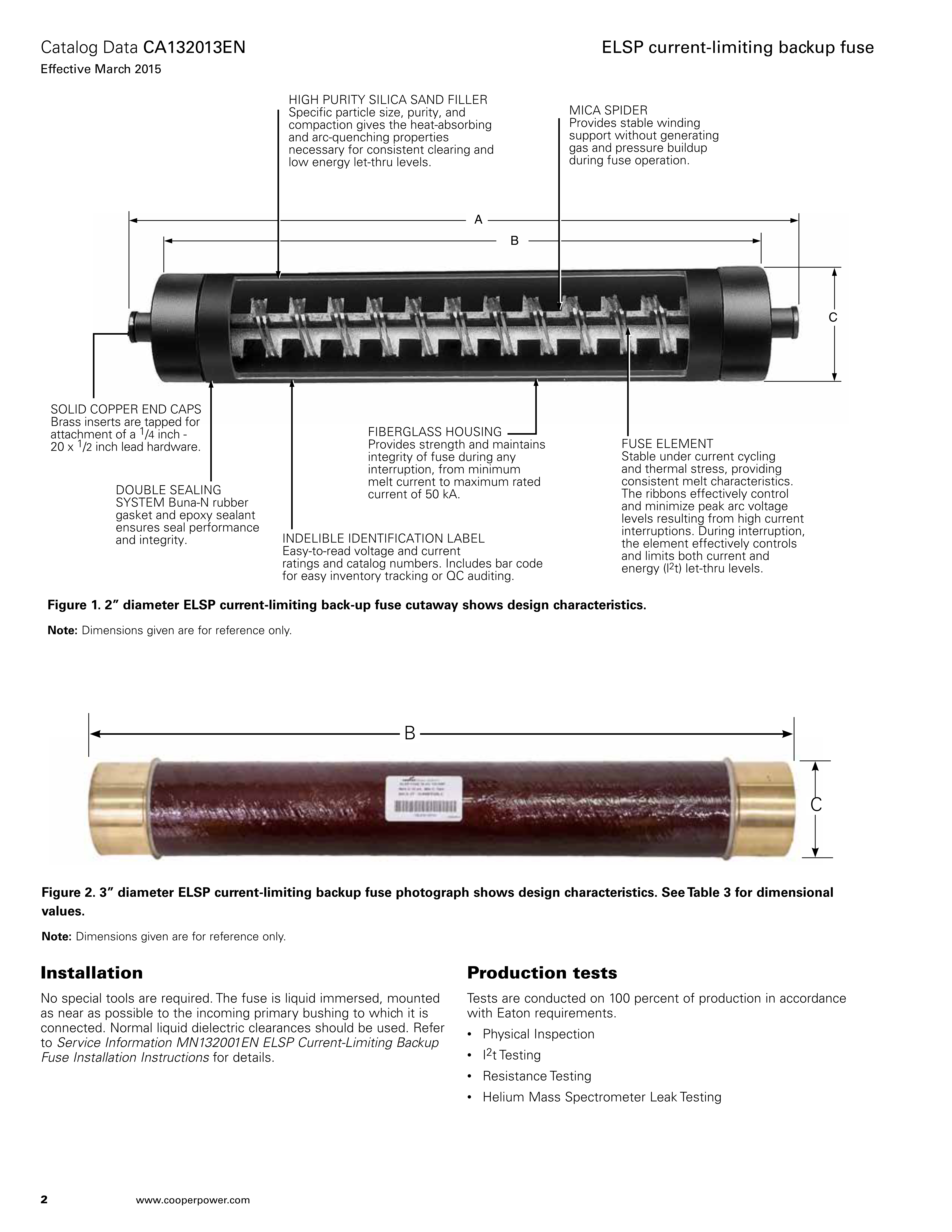 The fuse’s highly efficient current-limiting section minimizes the effects of high fault current stresses on equipment and the distribution system. Its minimum interrupting rating is coordinated with that of a low current interrupter to avoid undesirable low current operation; yet its maximum interrupting rating will clear the highest fault currents likely to occur. Higher continuous current ratings can be achieved by connecting two fuses in parallel.