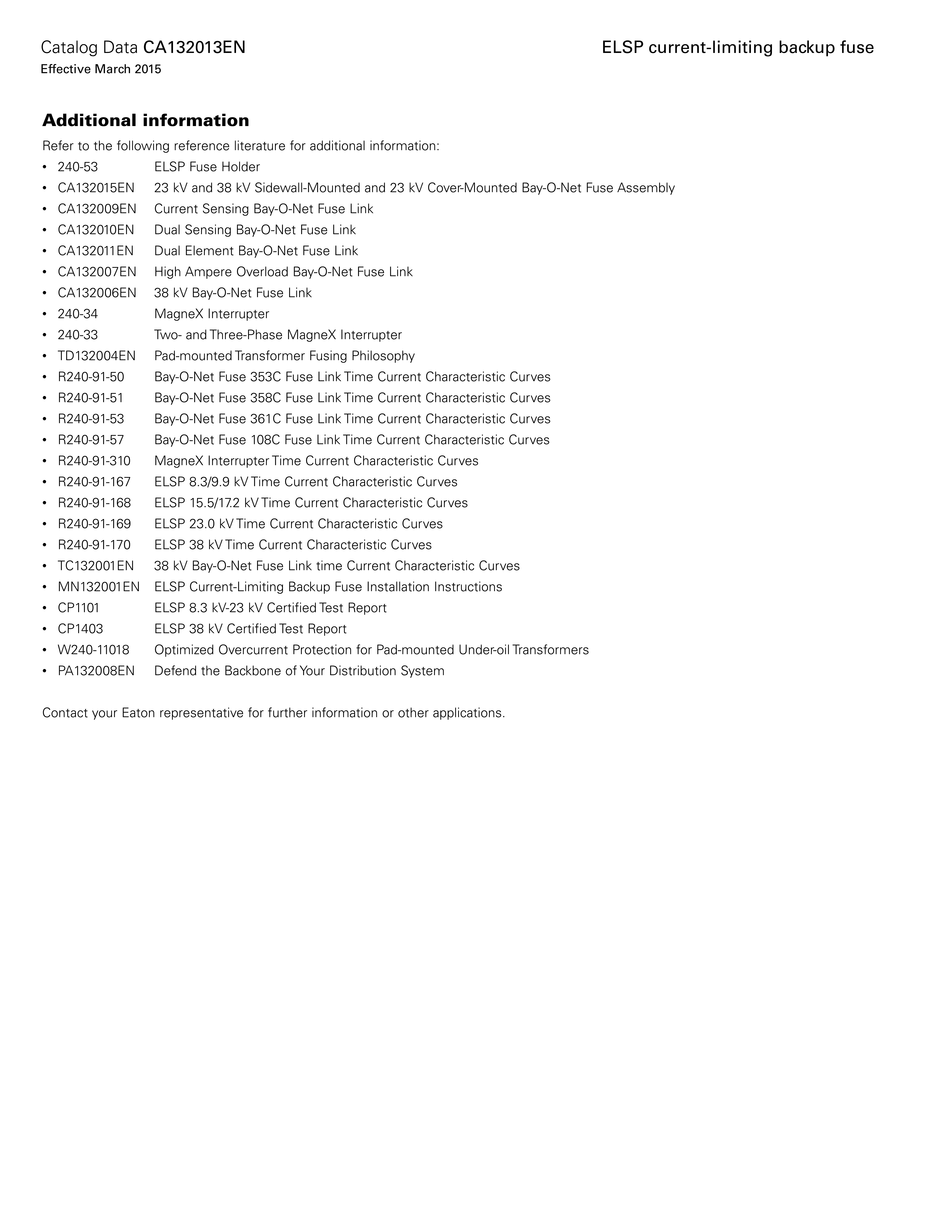 Eaton offers its Cooper Power™ series ELSP current-limiting backup fuse that is used in series with low current primary protection devices such as a Bay-O-Net fuse or its Cooper Power series MagneX™ interrupter.