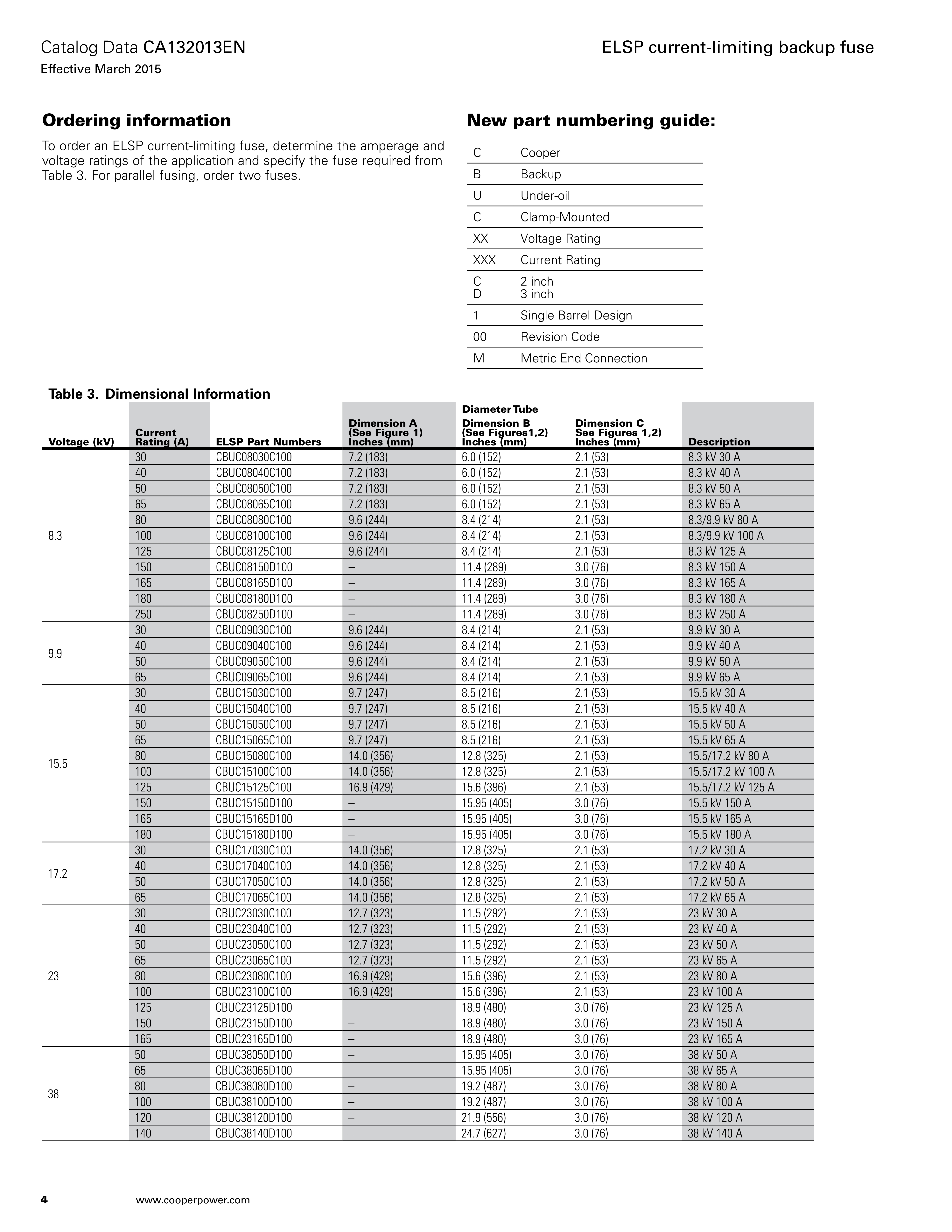 Eaton(Cooper)后备保护熔断器 8.3-38kV ELSP Current-Limiting Backup Fuse (CBUC Series)