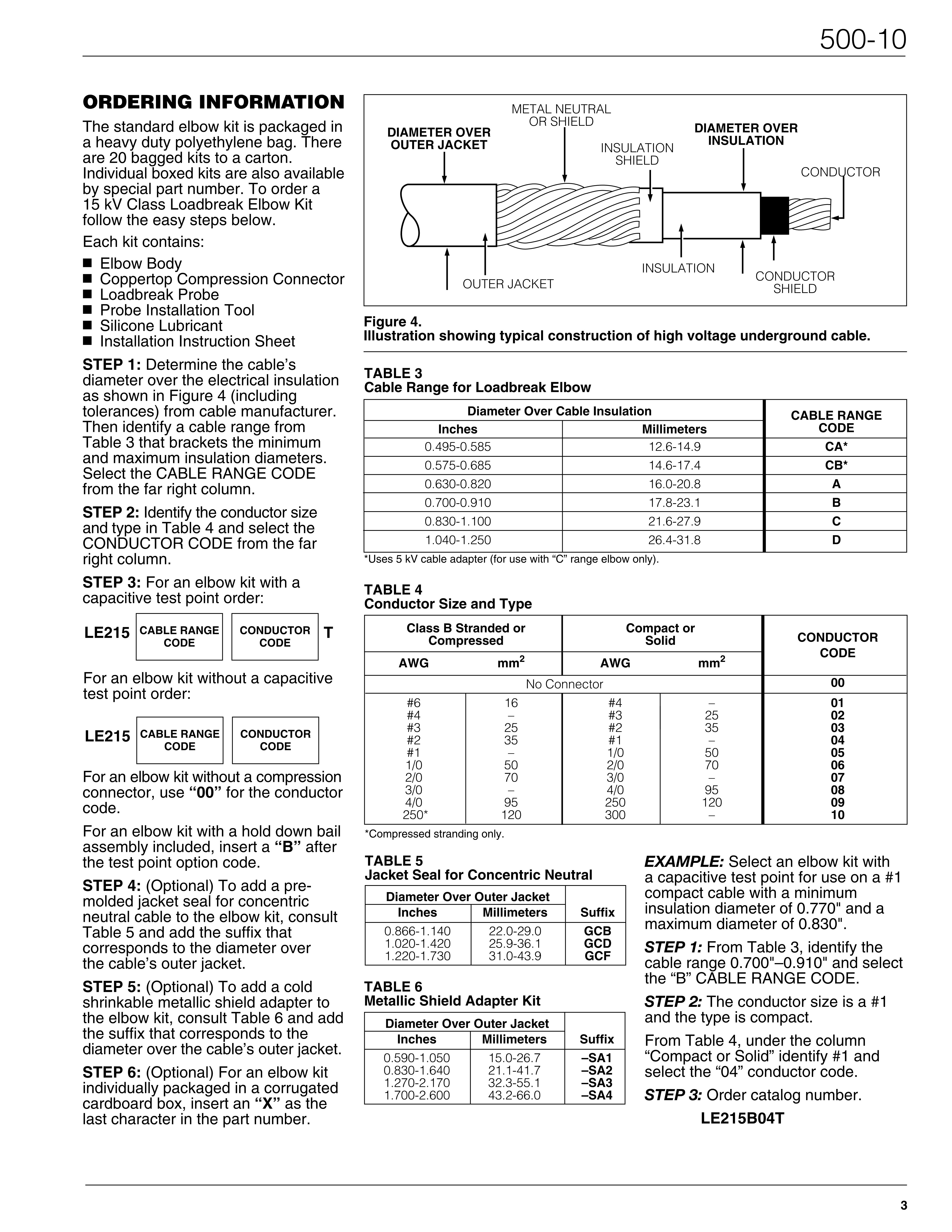 Cable ranges are sized to accept a wide range of cable conductor and insulation sizes. This range taking allows the same elbow to be used on either 175 mil or 220 mil cable within a given conductor size.