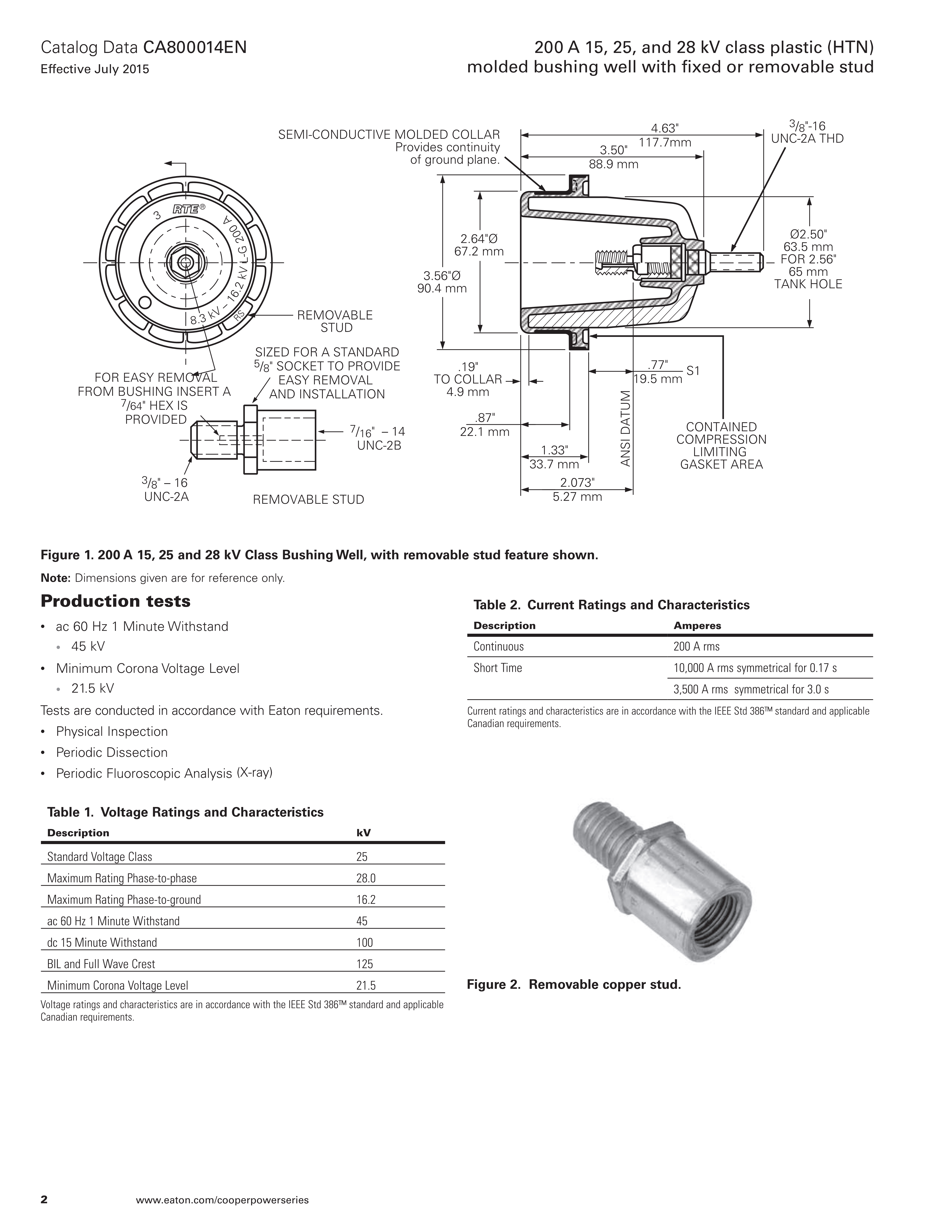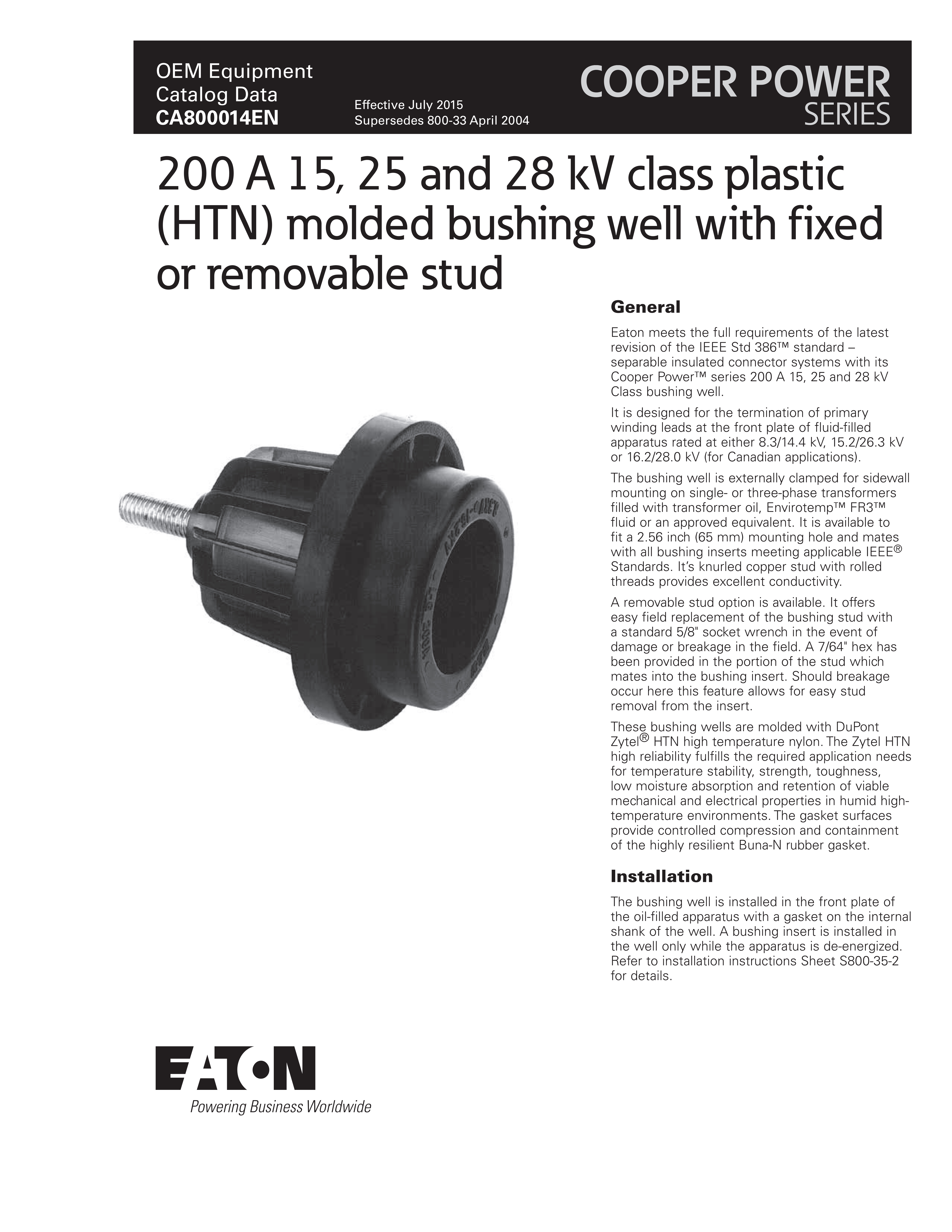 Eaton meets the full requirements of the latest revision of the IEEE Std 386™ standard – separable insulated connector systems with its Cooper Power™ series 200 A 15, 25 and 28 kV Class bushing well.