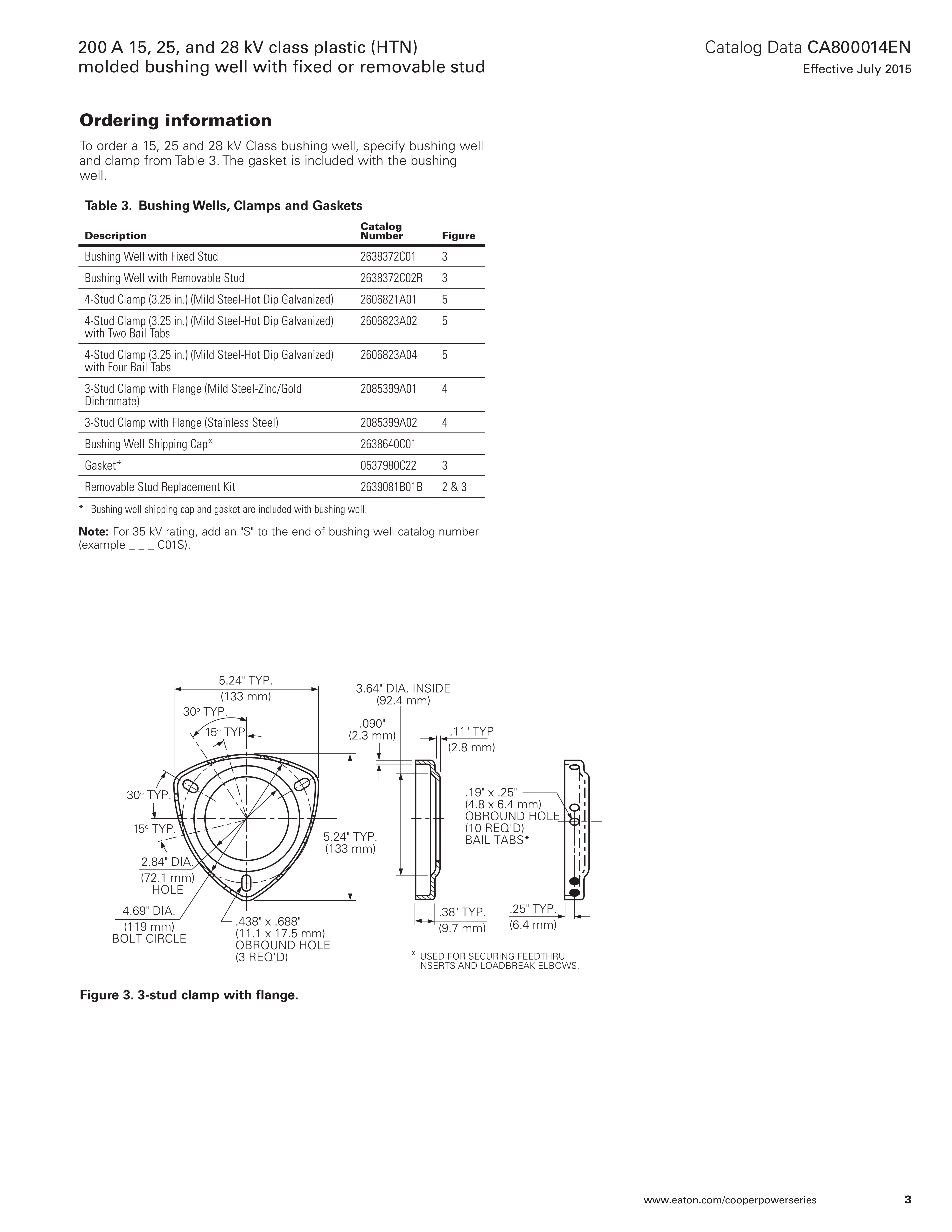 The bushing well is externally clamped for sidewall mounting on single- or three-phase transformers filled with transformer oil, Envirotemp™ FR3™ fluid or an approved equivalent. It is available to fit a 2.56 inch (65 mm) mounting hole and mates with all bushing inserts meeting applicable IEEE® Standards. It’s knurled copper stud with rolled threads provides excellent conductivity.