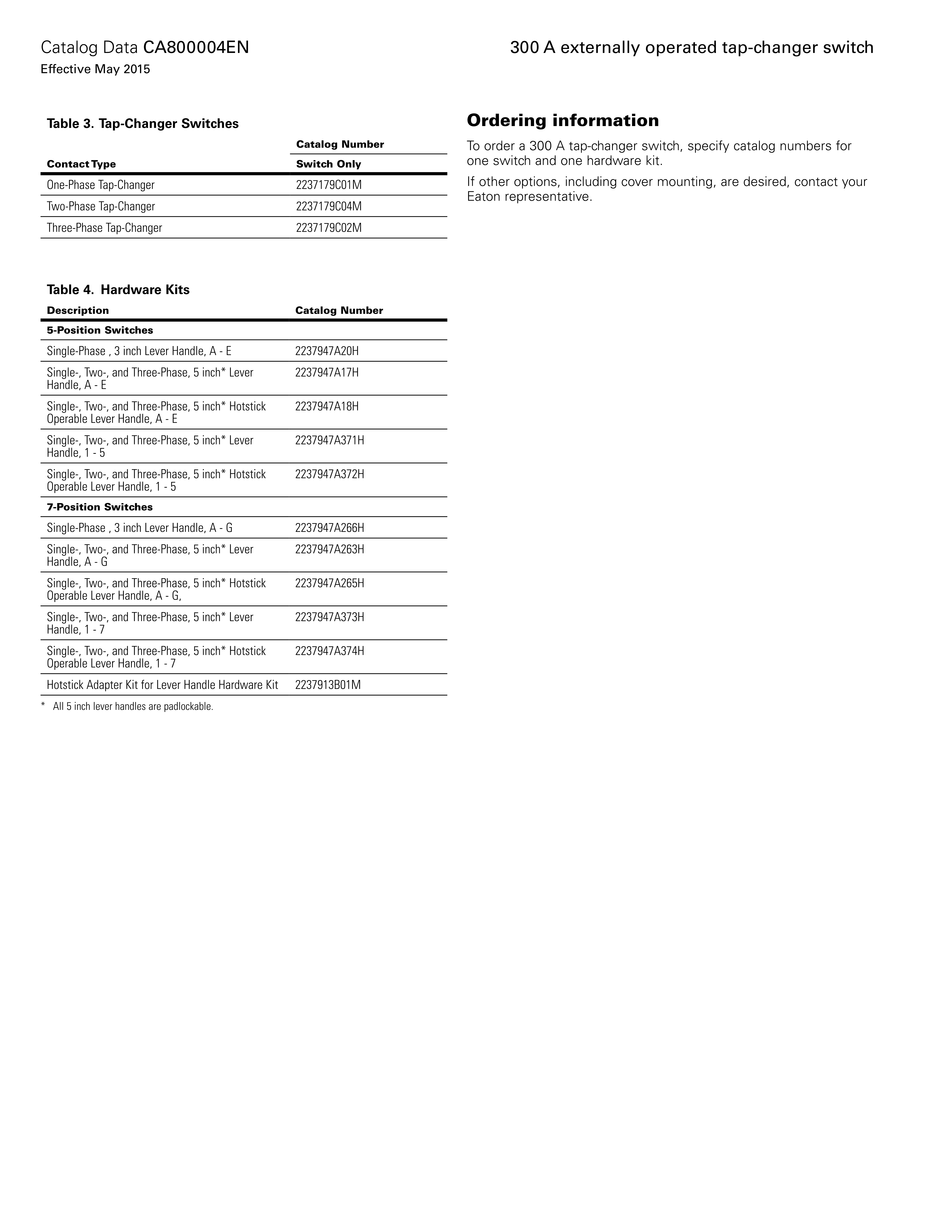 Eaton(Cooper)无励磁调压分接开关 35kV 300A Externally Operable One, Two, & Three-Phase Tap Changer Switch