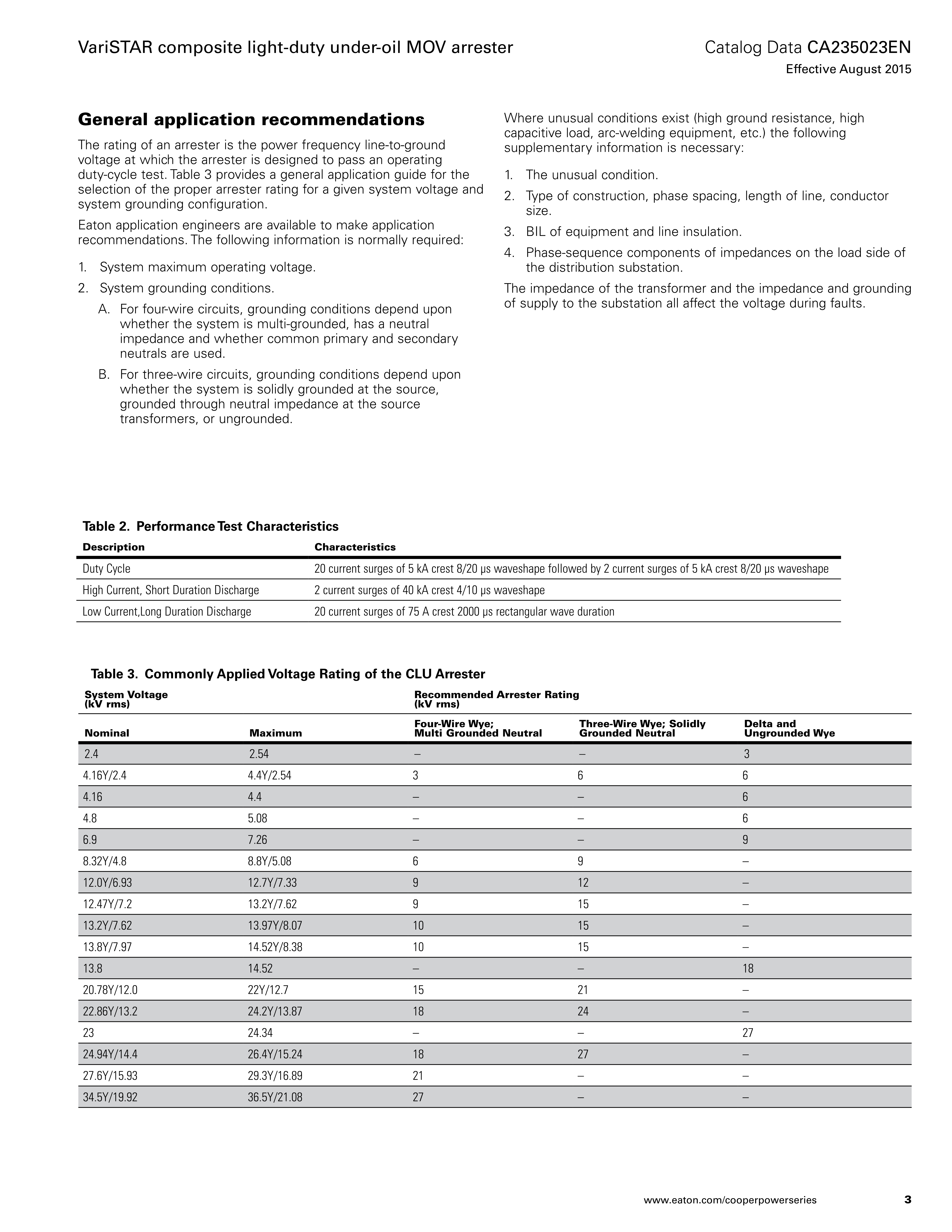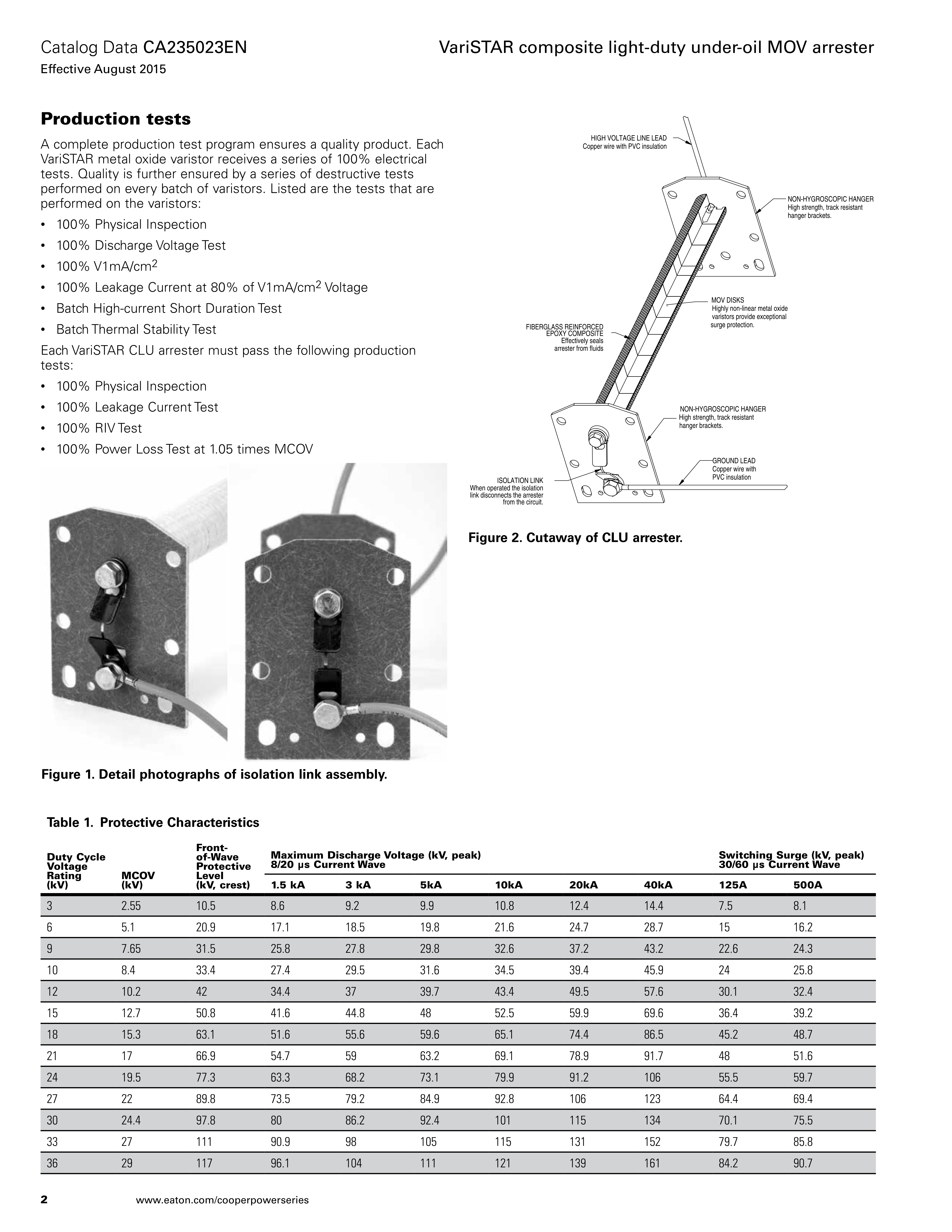 Eaton(Cooper)油浸式避雷器 VariSTAR Type Composite Light-Duty Under-Oil MOV Arrester (CLU Series)