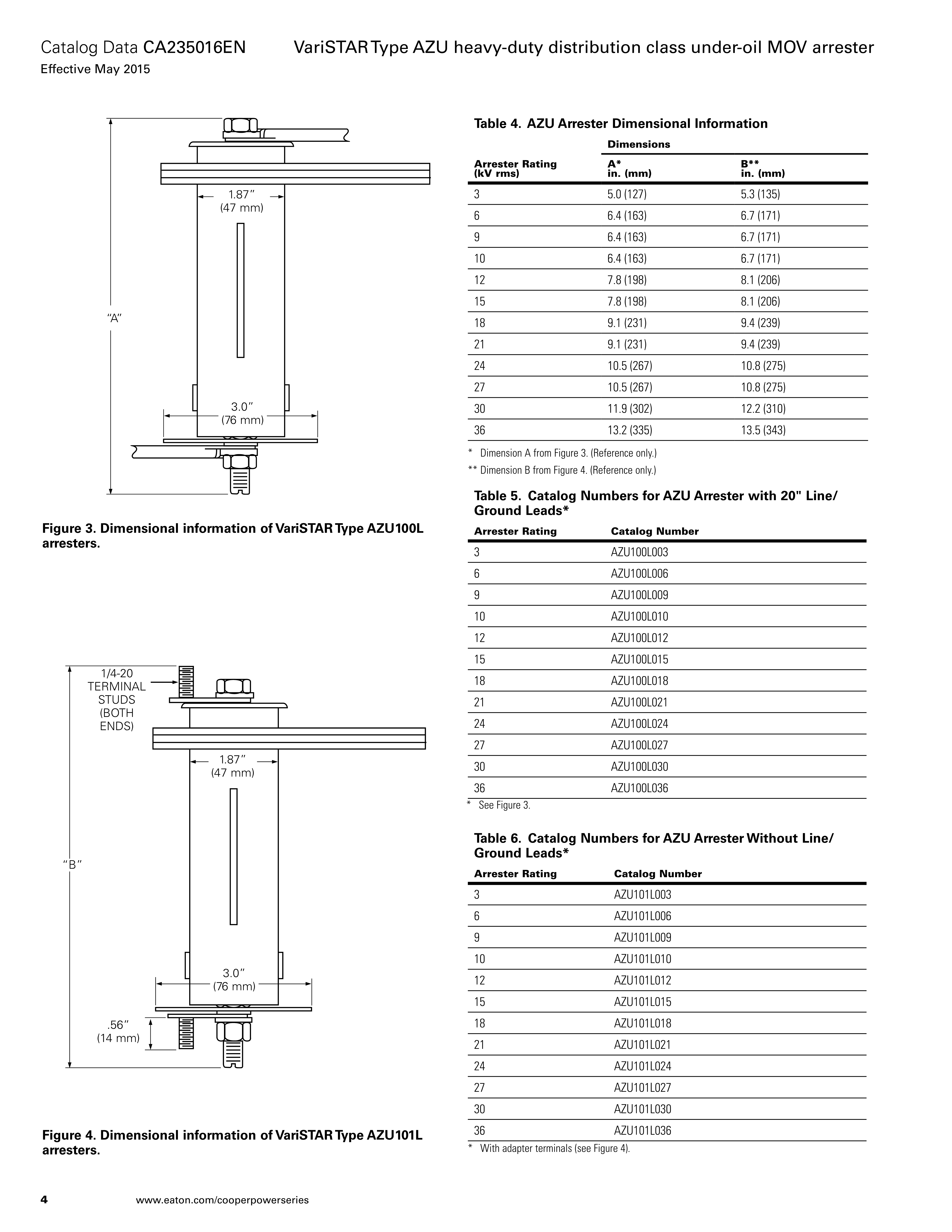 Eaton(Cooper)油浸式避雷器VariSTAR Type Heavy Duty Distribution Class Under-Oil MOV Arrester (AZU Series)