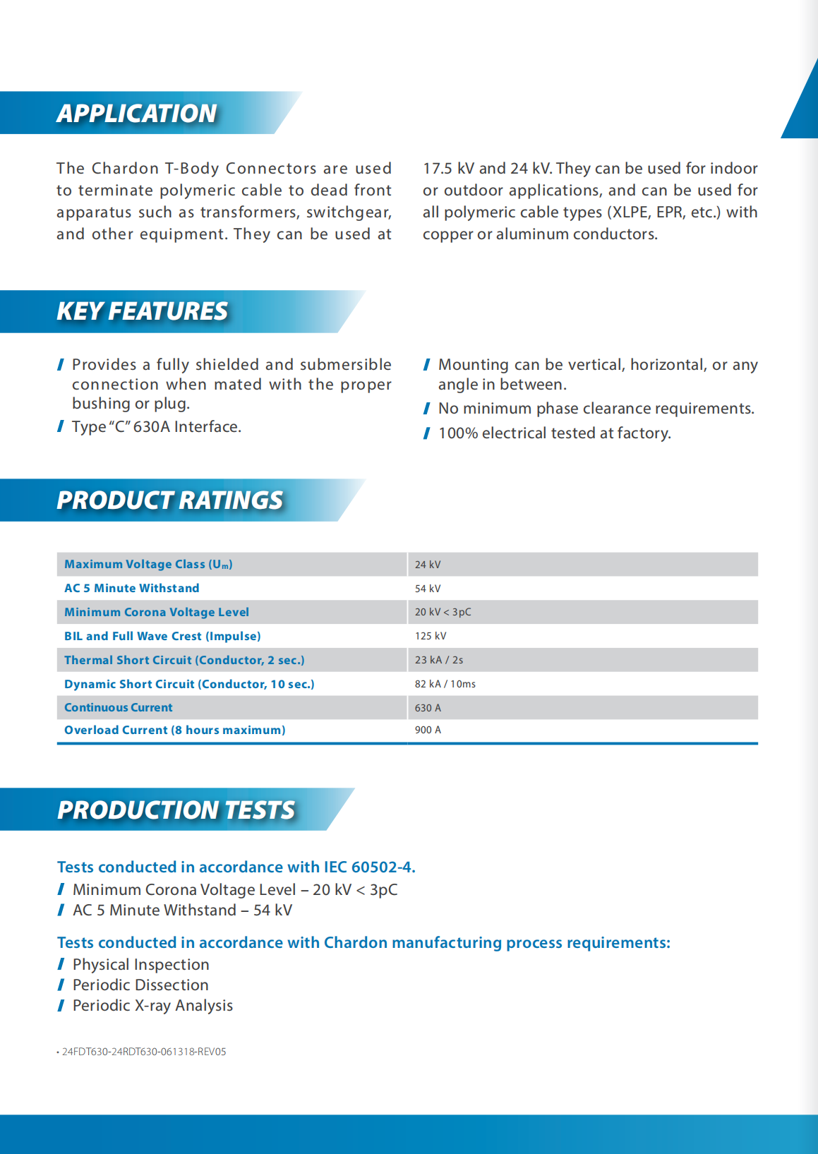 您当前的位置:首页 > Product Center > Chardon > 24FDT630-RDT630(17.5kV/24kV 630A Front T-Body/17.5 kV/24kV 630A Rear T-Body)