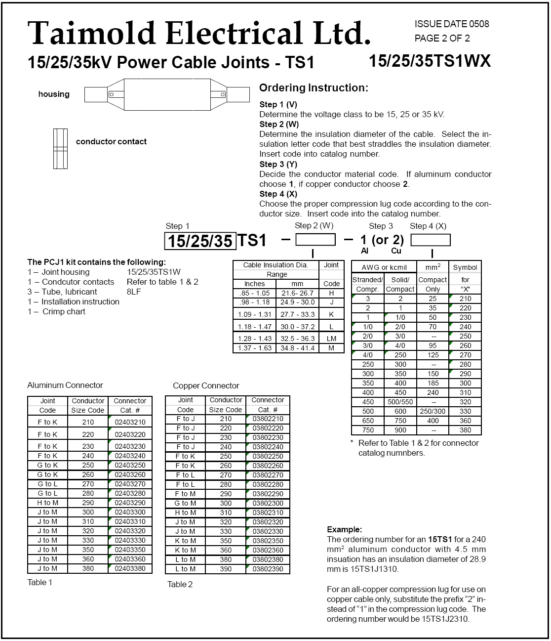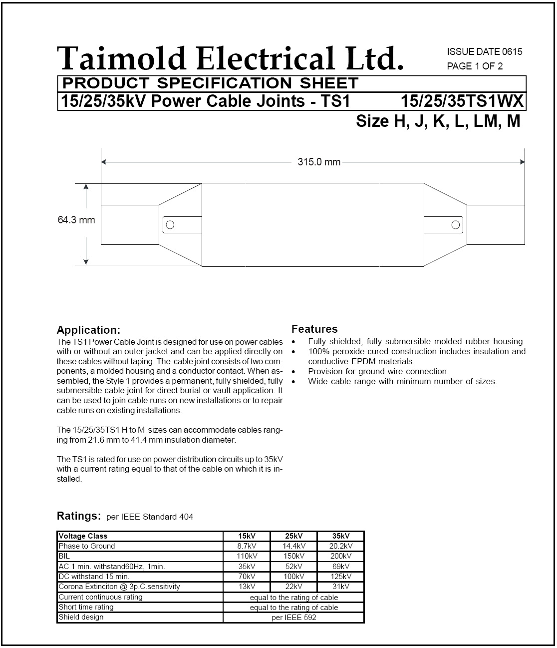 您当前的位置:首页 > Product Center > 15/25kV Mold Rubber Products(Taimold) > 15-35KV 中间电缆接头(大)