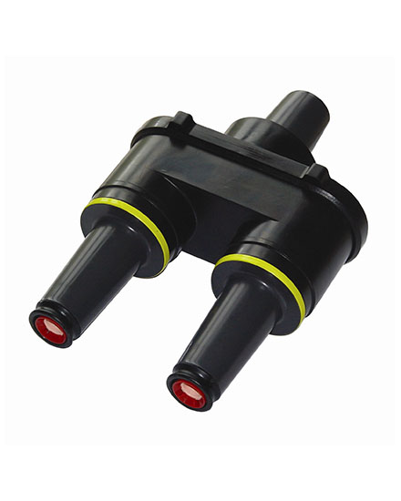 200A 15KV 双通套管接,与套管井配合,提供了与肘型电缆接头以及肘型避雷器配合构成可插拔连接系统中最基本的组成部分,主要用于美式箱变、户外环网柜的高压电气连接。本产品与套管井配合使用使得现场安装与更换成为可能。